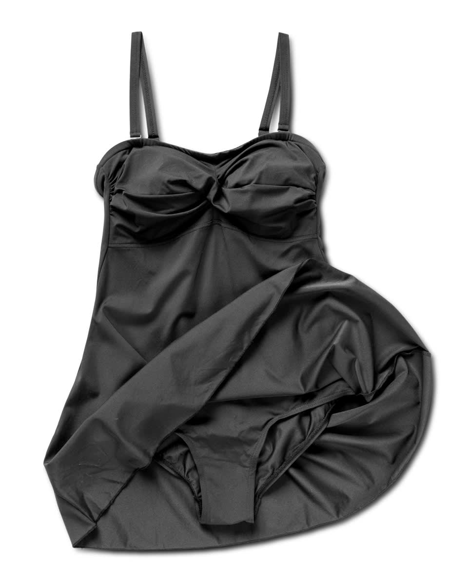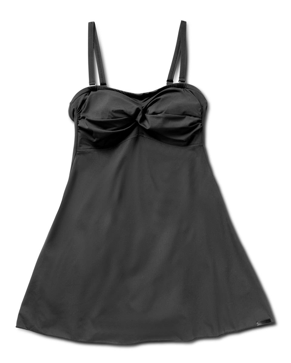 En tidløs badedrakt med skjørt og en elegant, feminin silhuett. Designet med formstøpte cuper for lett støtte og en naturlig fasong. De justerbare og avtagbare skulderstroppene gir perfekt passform, mens en diskré silikonkant holder plagget sikkert på plass. Fôret kile gir en jevn og behagelig følelse mot huden.