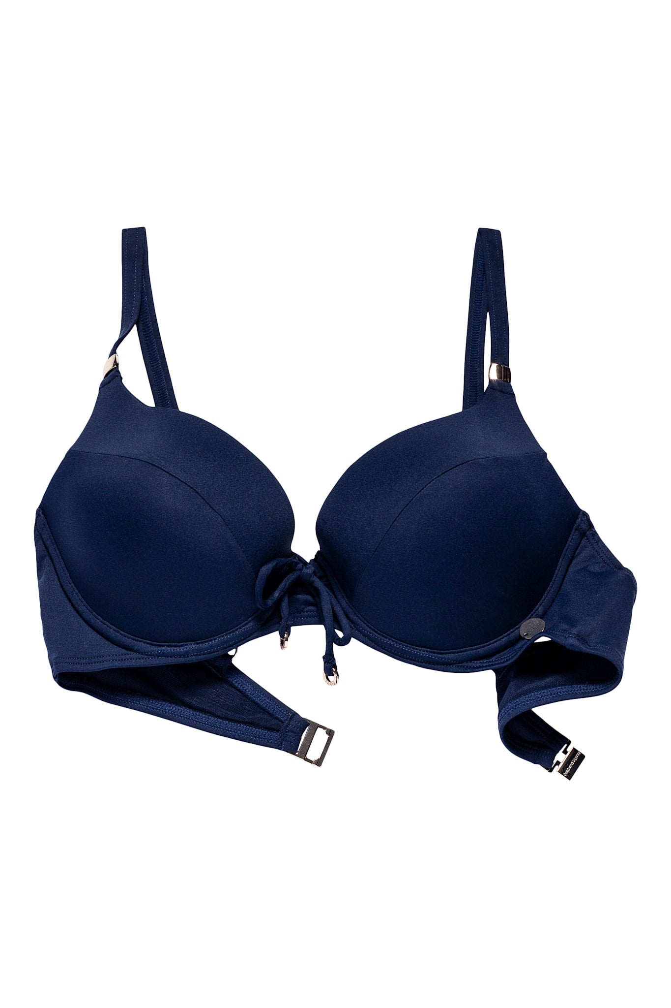 Push up bikini top med bøyle, formet cup og innleggsputer som kan tas ut.