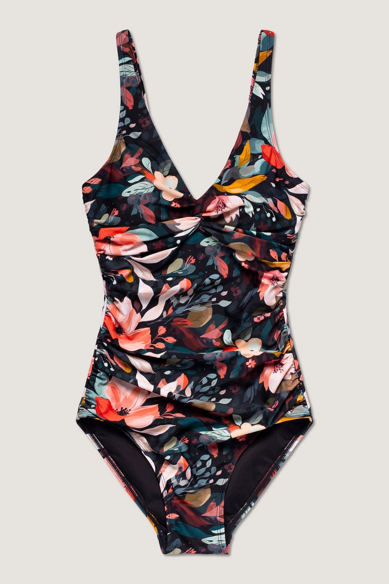 Badedrakt med V-hals og vakker drapering som sammen gir en svært flatterende passform.
