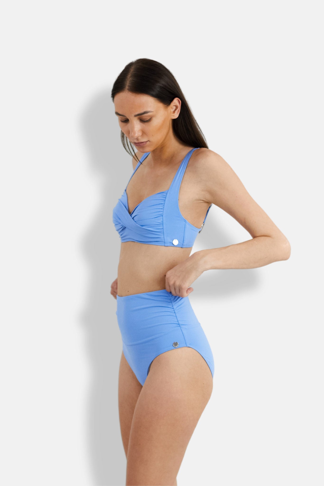 Bikini topp med en twist i front som gir en svært god passform og gjør at denne også kan passe for deg med litt større cup.