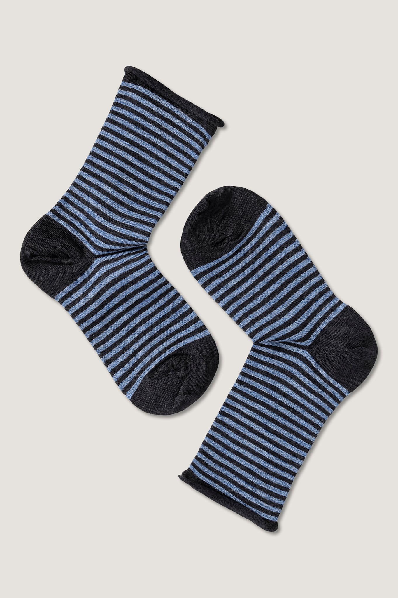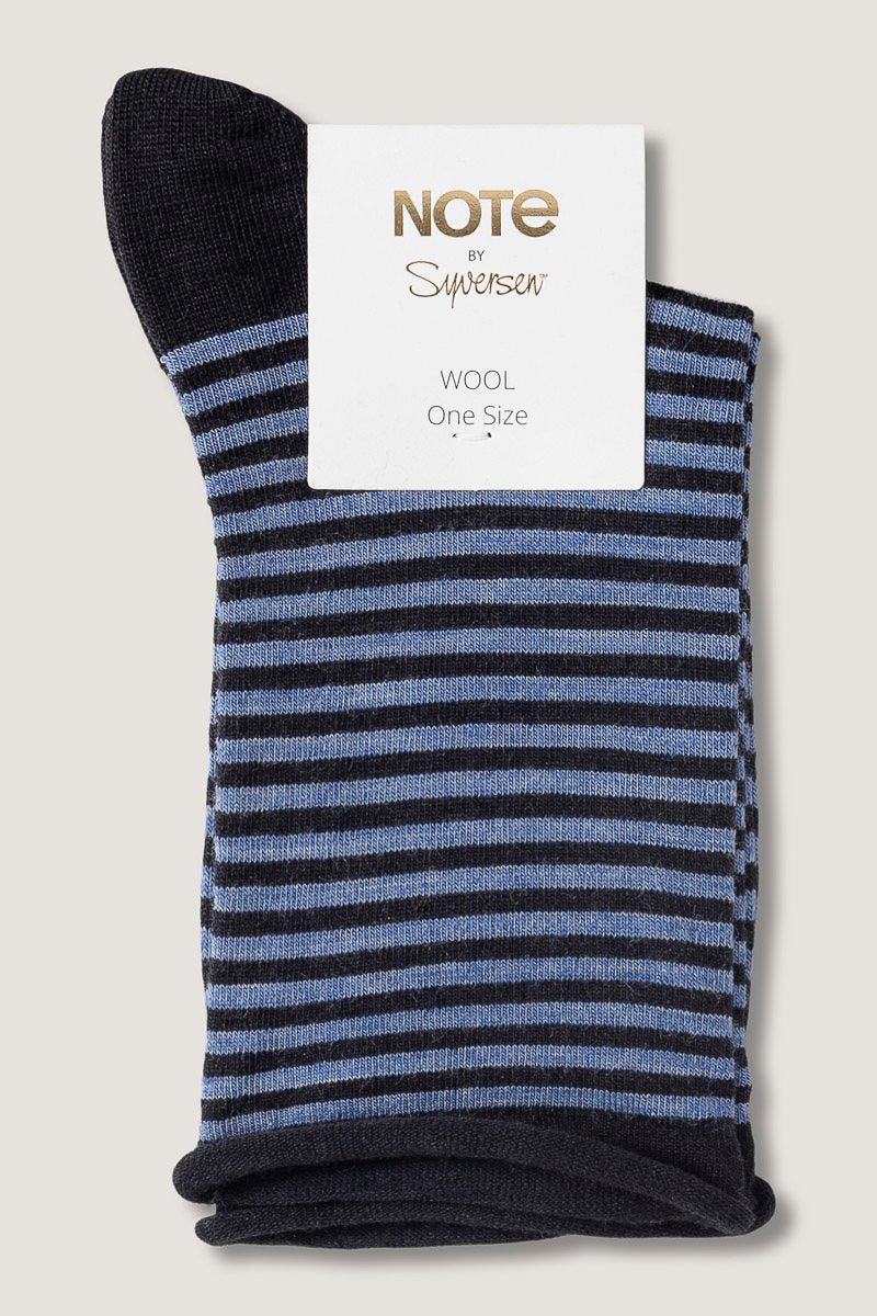 Behagelig stripete ullsokk med rullekant, laget i høy kvalitet for maksimal komfort – perfekt til hverdagsbruk, hele året. Strikket med 180 nåler for en glatt, behagelig passform med slitesterk finish.