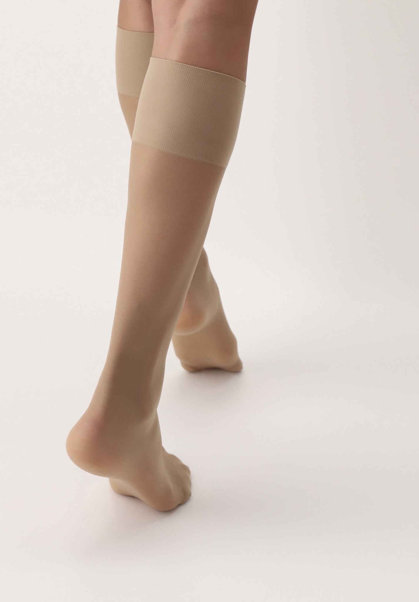 70 denier knestrømpe med gradert kompresjon, som fremmer blodsirkulasjonen.