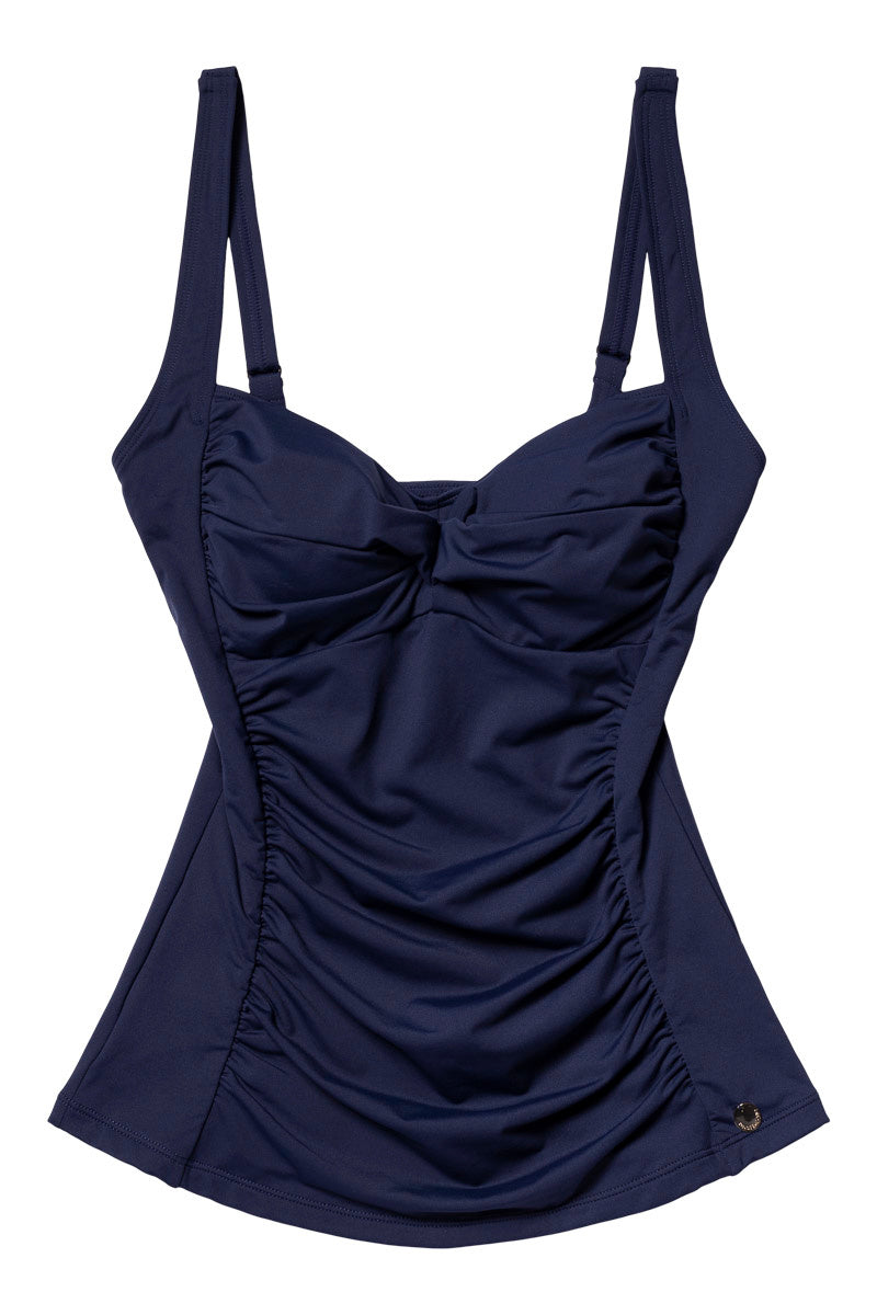 Tankini med en twist i front som gir en svært god passform og gjør at denne også kan passe for deg med litt større cup.