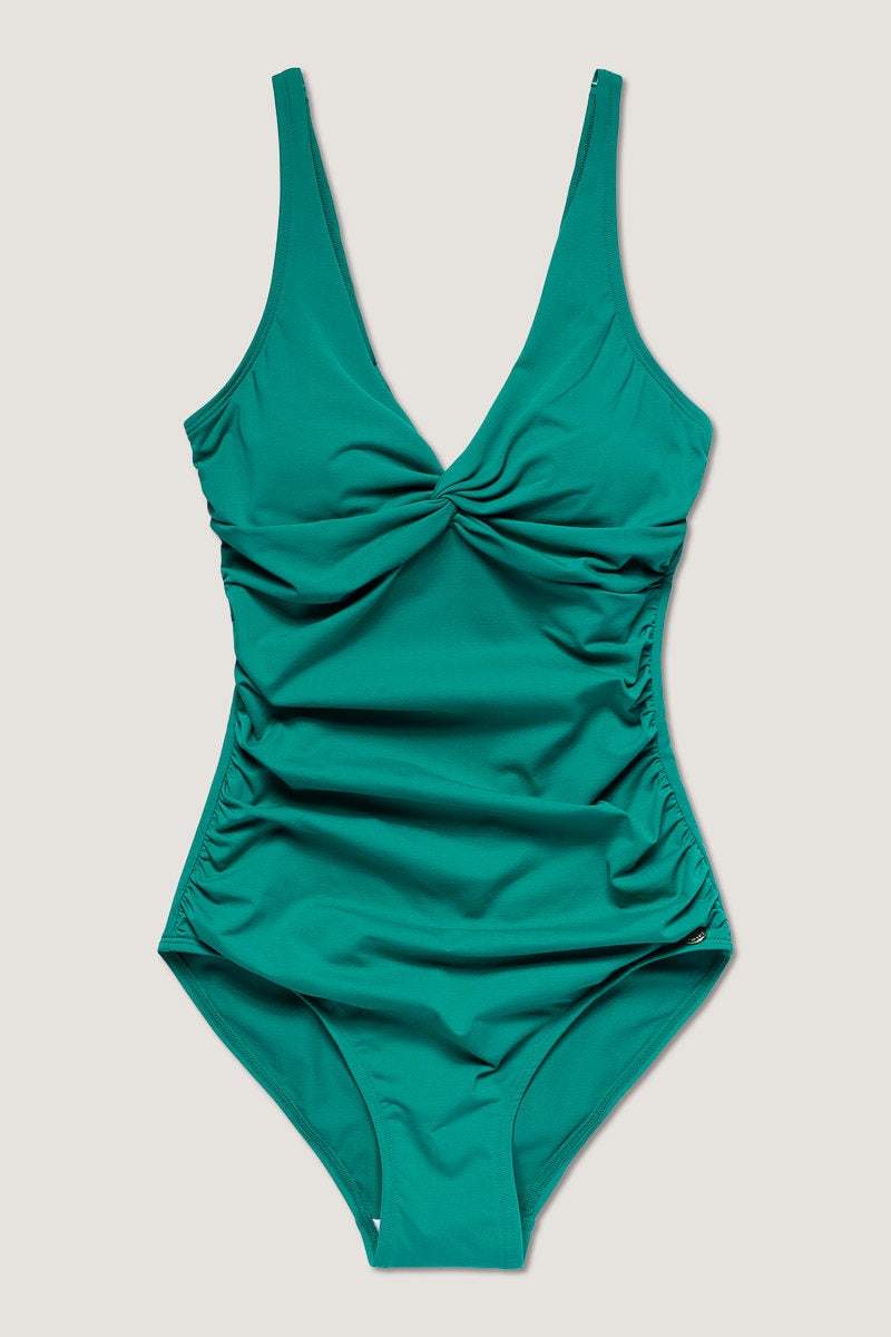 Badedrakt med V-hals og vakker drapering som sammen gir en svært flatterende passform.