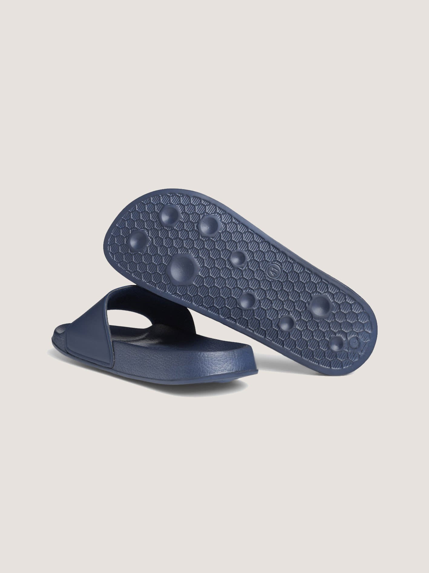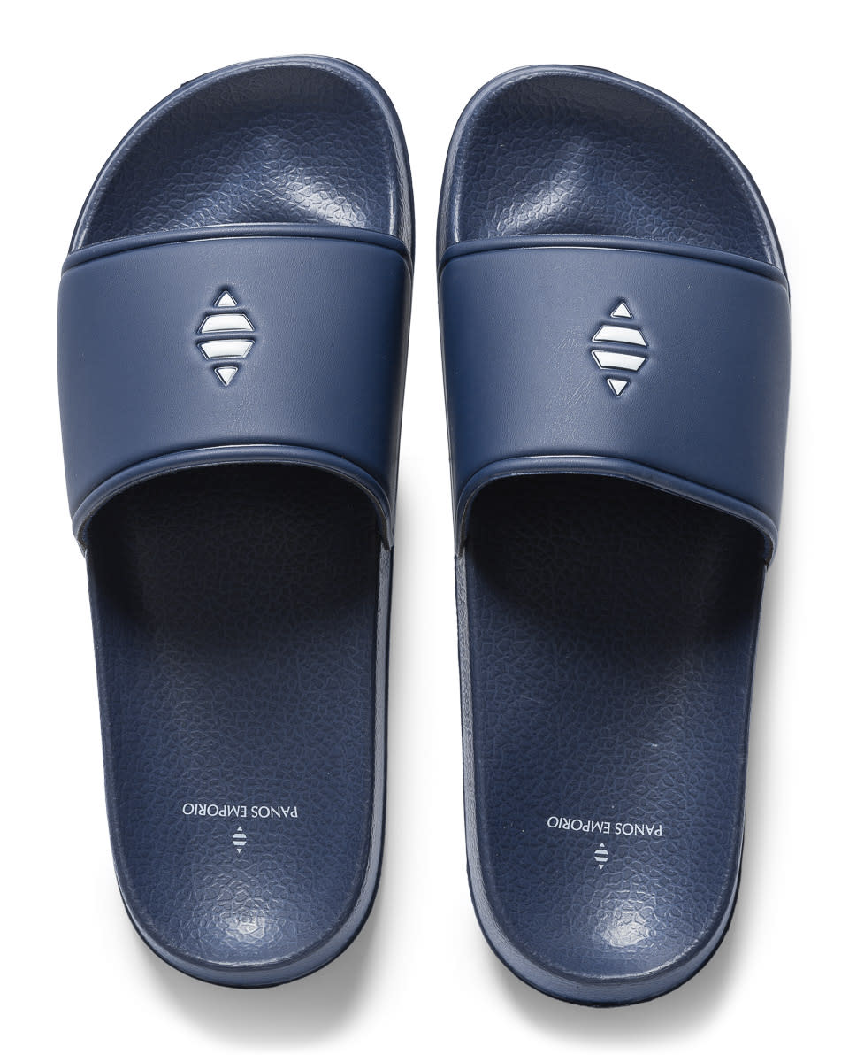Unisex slip-in sandal i en klassisk mørk blå farge med diskret hvitt logo element.