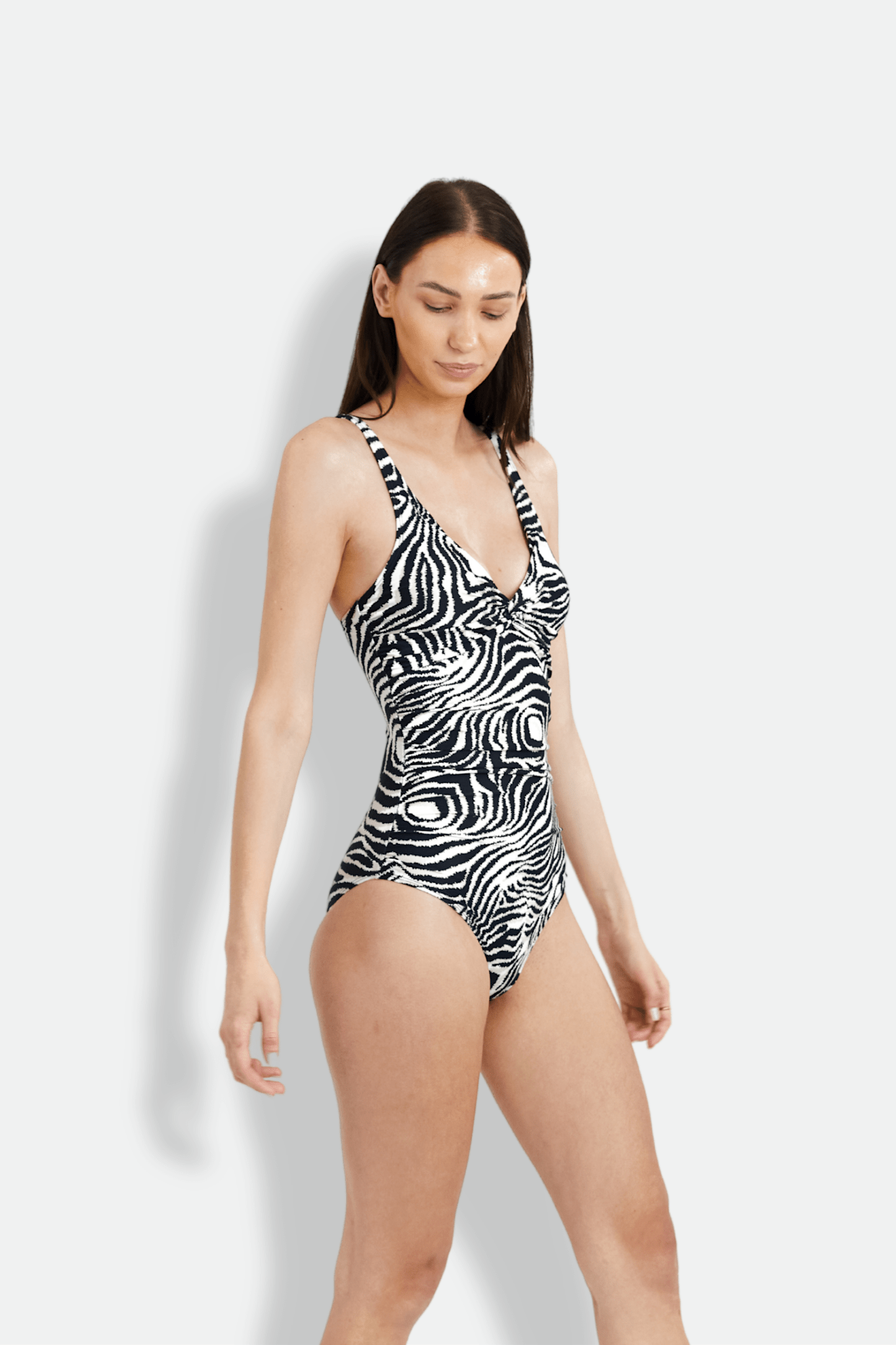 Badedrakt med V-hals og vakker drapering som sammen gir en svært flatterende passform.